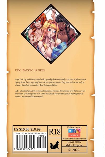 Eryk, Kari, Fay, and Lin are tasked with a quest by the Eieran Family-to head to Whiterun Hot Spring Resort, locate a peeping Tom, and bring them to justice. They head to the resort, only to discover the culprit is none other than Kari's grandfather. After returning home, Eryk continues building the Nevarian Braves into a force that can protect the nation. Everything seems calm under the surface. But tension rise when the Drage Family makes a move none of them expected.