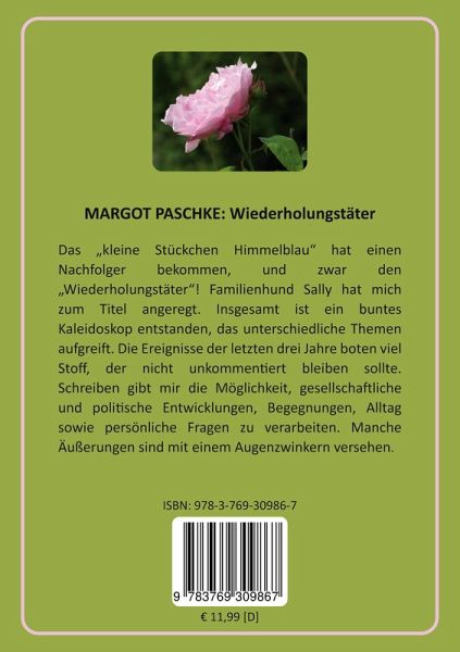 "Man wird früher oder später leicht zum Wiederholungstäter!" Unter dieser Prämisse wurde mein zweiter kleiner Gedichtband verfasst. Vor drei Jahren gab es das "kleine Stückchen Himmelblau". In der Folgezeit wuchs meine "Datensammlung" weiter an. Das Ergebnis ist in diesem Buch zusammengefasst. Autorenmäßig bin ich Autodidakt.