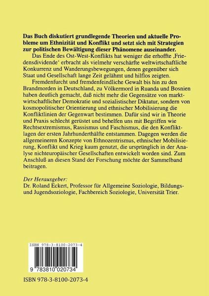 Das Buch diskutiert grundlegende Theorien und aktuelle Problemeum Ethnizität und Konflikt und setzt sich mit Strategien zur politischenBewältigung dieser Phänomene auseinander. Das Ende des Ost-West-Konflikts hat weniger die erhoffte,Friedensdividende' erbracht als vielmehr verschärfte weltwirtschaftlicheKonkurrenz und Wanderungsbewegungen, denen gegenüber sich Staat undGesellschaft lange Zeit gelähmt und hilflos zeigten. Fremdenfurcht undfremdenfeindliche Gewalt bis hin zu den Brandmorden in Deutschland, zuVölkermord in Ruanda und Bosnien haben deutlich gemacht, daß nicht mehr dieGegensätze von marktwirtschaftlicher Demokratie und sozialistischer Diktatur,sondern von kosmopolitischer Orientierung und ethnischer Mobilisierung dieKonfliktlinien der Gegenwart bestimmen. Dafür sind wir in Theorie und Praxisschlecht gerüstet und behelfen uns mit Begriffen wie Rechtsextremismus,Rassismus und Faschismus, die den Konfliktlagen der ersten Jahrhunderthälfteentstammen. Dagegen werden die allgemeineren Konzepte von Ethnozentrismus,ethnischer Mobilisierung, Konflikt und Krieg kaum genutzt, die ursprünglichin der Analyse nichteuropäischer Gesellschaften entwickelt worden sind. ZumAnschluß an diesen Stand der Forschung möchte der Sammelband beitragen. Aus dem Inhalt:Gundlegende TheorienEthnozentrismus im interkulturellen UmgangAnthropologie des Krieges¶Partizipative¶ Identitäten - Ausgrenzung aussystemtheoretischer SichtIdentitätsbildung und Ethnozentrismus aus der Sicht derSozialpsychologieAktuelle ProblemeErklärungsmuster fremdenfeindlicher Gewalt im empirischen TestPolizei und Fremde: Spezifische Belastungssituationen und dieGenese von Feindbildern und ÜbergriffenSubjektiv wahrgenommene Bedrohung: Rechte Skins und türkischeJugendliche im PortraitPolitische BewältigungEthnizität, Konflikt und politische OrdnungMinderheitenpolitik in der Europäischen UnionKonflikte, ihre Eskalation und die Chancen der RegulierungPolitische und pädagogische Konsequenzen Mit Beiträgen von: Christ