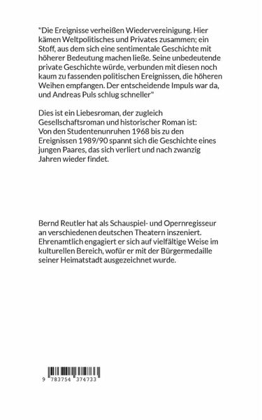 "Die Ereignisse verheißen Wiedervereinigung. Hier kämen Weltpolitisches und Privates zusammen; ein Stoff, aus dem sich eine sentimentale Geschichte mit höherer Bedeutung machen ließe. Seine unbedeutende private Geschichte würde, verbunden mit diesen noch kaum zu fassenden politischen Ereignissen, die höheren Weihen empfangen. der entscheidende Impuls war da, und Andreas Puls schlug schneller"Dies ist ein Liebesroman, der zugleich Gesellschaftsroman und historischer Roman ist: Von den Studentenunruhen 1968 bis zu den Ereignissen 1989/90 spannt sich die Geschichte eines jungen Paares, das sich verliert und nach zwanzig Jahren wieder findet.