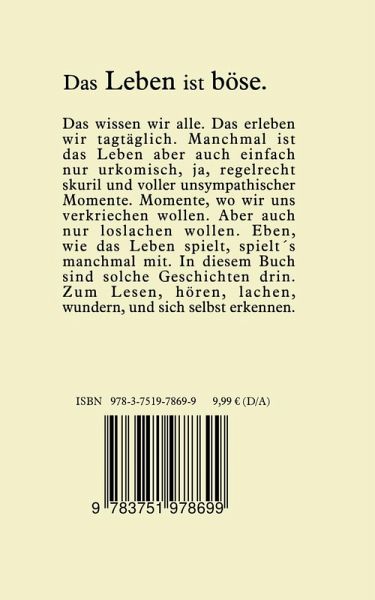 Das wissen wir alle. Das erleben wir tagtäglich. Manchmal ist das Leben aber auch einfach nur urkomisch, ja, regelrecht skurril und voller unsympathischer Momente. Momente, wo wir uns verkriechen wollen. Aber auch nur loslachen wollen. Eben, wie das Leben spielt, spielt´s manchmal mit. In diesem Buch sind solche Geschichten drin.Zum Lesen, hören, lachen, wundern, und sich selbst erkennen.