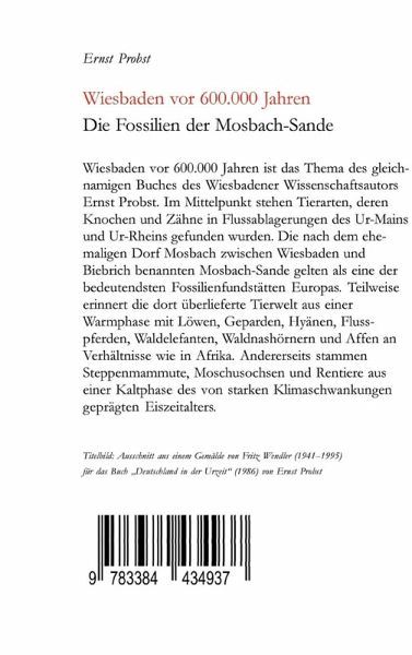 Wiesbaden vor 600.000 Jahren ist das Thema des gleichnamigen Buches und E-Books des Wiesbadener Wissenschaftsautors Ernst Probst. Im Mittelpunkt stehen Tierarten, deren Knochen und Zähne in eiszeitlichen Flussablagerungen des Ur-Mains und Ur-Rheins gefunden wurden. Die nach dem ehemaligen Dorf Mosbach zwischen Wiesbaden und Biebrich benannten Mosbach-Sande gelten als eine der bedeutendsten Fossilienfundstätten Europas. Teilweise erinnert die dort überlieferte Tierwelt aus einer Warmphase mit Löwen, Leoparden, Geparden, Hyänen, Flusspferden, Waldelefanten, Waldnashörnern und Affen an Verhältnisse wie in Afrika. Andererseits stammen Steppenmammute, Moschusochsen und Rentiere aus einer Kaltphase des von starken Klimaschwankungen geprägten Eiszeitalters.