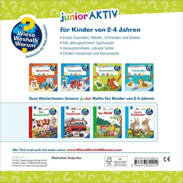 Wieso? Weshalb? Warum? junior AKTIV bietet abwechslungsreiche Beschäftigung für die Kleinen ab 2 Jahren. Zu den beliebtesten Sachthemen finden Kinder hier altersgerechte Ausmalbilder, einfache Formen zum Ausschneiden und Aufkleben und erste Rätsel. In über 20 kreativen Aufgaben gibt es zudem erstes Sachwissen zu entdecken: Dafür sorgen klare Bilder und kurze, leicht verständliche Texte. Das große Format und die stabilen, heraustrennbaren Seiten sind ideal für kleine Hände und können mit verschiedenen Stiften und Farben gestaltet werden. So können Kinder mit viel Freude AKTIV ihre Lieblingsthemen entdecken.