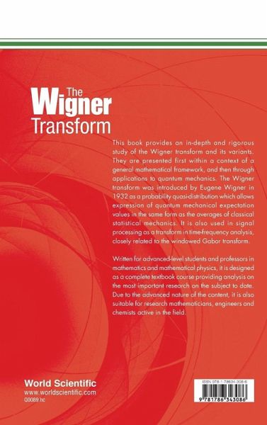 This book provides an in-depth and rigorous study of the Wigner transform and its variants. They are presented first within a context of a general mathematical framework, and then through applications to quantum mechanics. The Wigner transform was introduced by Eugene Wigner in 1932 as a probability quasi-distribution which allows expression of quantum mechanical expectation values in the same form as the averages of classical statistical mechanics. It is also used in signal processing as a transform in time-frequency analysis, closely related to the windowed Gabor transform. Written for advanced-level students and professors in mathematics and mathematical physics, it is designed as a complete textbook course providing analysis on the most important research on the subject to date. Due to the advanced nature of the content, it is also suitable for research mathematicians, engineers and chemists active in the field.