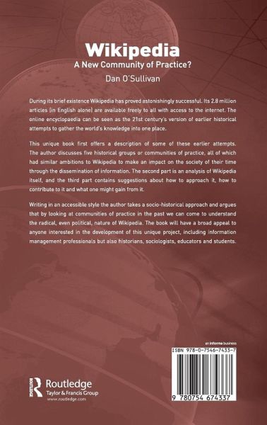 This online encyclopedia can be seen as the 21st century's version of earlier historical attempts to gather the world's knowledge into one place - this unique book offers a description of some of these earlier attempts. O'Sullivan follows with a thorough analysis of Wikipedia itself, suggesting on how to approach and contribute to the site and what can be gained by using it. Written in an accessible style, the author takes a socio-historical approach, arguing that by looking at communities of practice in the past we can come to understand the radical, even political, nature of Wikipedia. The book will have a broad appeal to anyone interested in the development of this unique project, including information management professionals, historians, sociologists, educators and students.