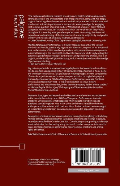 'Wild and Dangerous Performances is a highly readable account of the ways in which circus animals, particularly big cats (lions, tigers, leopards) and elephants, respond on an emotional level to, even develop an emotional rapport with, their trainers. Tait's new book provides a vivid perspective on developments in animal training in the nineteenth and twentieth century, while wryly noting the persistent gender stereotyping of both trainers and performing animals. This is an original, academically well grounded study, which valuably extends our knowledge of performance history.' - Professor Jim Davis, University of Warwick, UK