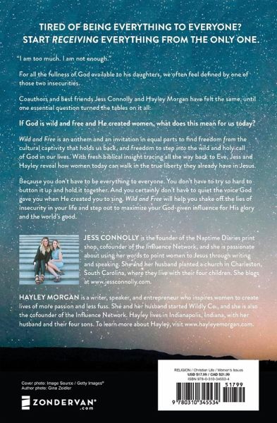 You don't have to be everything to everyone. You don't have to try so hard to button it up and hold it together. Join best friends and coauthors Jess Connolly and Hayley Morgan as they reveal how women today can walk in the true liberty we already have in Jesus. For all the fullness of God available to his daughters, we often feel limited by two defining insecurities: "I am too much" and "I am not enough." Jess and Hayley felt the same until one essential question turned the tables: If God is wild and free and he created women, what does this mean for us today? Wild and Free is an invitation to find freedom from the cultural captivity that holds us back, and freedom to step into God's wild and holy call in our lives. Jess and Hayley answer difficult questions that so many women have asked them over the years, including: * How do I compete with the burden of expectation of what women are "supposed" to be? * Where do I actually fit in? * How can I start living out my God-given identity every day of my life? With fresh biblical insight tracing all the way back to Eve and a treasury of practical application, Jess and Hayley reveal how women today can walk in the true liberty we already have in Jesus--because you certainly don't have to quiet the voice that God gave you when he created you to sing. Wild and Free will help you shake off the lies of insecurity in your life and step forward to maximize your God-given influence for his glory and the world's good.