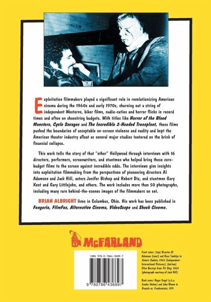 Exploitation filmmakers played a significant role in revolutionizing American cinema during the 1960s and early 1970s, churning out a string of independent Westerns, biker films, nudie-cuties and horror flicks in record times and often on shoestring budgets. With titles like Horror of the Blood Monsters, Cycle Savages and The Incredible 2-Headed Transplant, these films pushed the boundaries of acceptable on-screen violence and nudity and kept the American theater industry afloat as several major studios teetered on the brink of financial collapse. This work tells the story of that "other" Hollywood through interviews with 16 directors, performers, screenwriters, and stuntmen who helped bring these zero-budget films to the screen against incredible odds. The interviews give insights into exploitation filmmaking from the perspectives of pioneering directors Al Adamson and Jack Hill, actors Jenifer Bishop and Robert Dix, and stuntmen Gary Kent and Gary Littlejohn, and others. The work includes more than 50 photographs, including many rare behind-the-scenes images of the filmmakers on set.