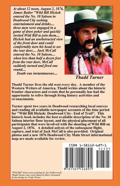 At about 12 noon, August 2nd, 1876, James Butler "Wild Bill" Hickok, entered the No. 10 Saloon in Deadwood City seeking entertainment and drinks.... three men were engaged in a game of draw poker cards and quickly invited Wild Bill to join them.... Hickok had an unobstructed view of the front door and could comfortably turn his head to see the rear door... Jack McCall entered the No. 10 Saloon ... when less than half a dozen feet from the rear door, McCall suddenly turned and fired one round... death was instantaneous.... This historical book includes the best available description of the No. 10 Saloon interior floor layout, and the physical placement of all the participants that were involved with the shooting of Wild Bill on August 2nd, 1876. A detailed analysis of the subsequent flight, capture, and trial of Jack McCall is also provided. Original photos and a new 1876 Deadwood City Main Street informational map are made available for review.