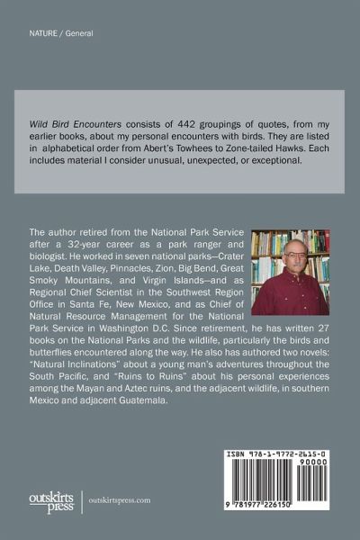 Wild Bird Encounters consists of 442 groupings of quotes, from my earlier books, about my personal encounters with birds. They are listed in ¿ alphabetical order from Abert's Towhees to Zone-tailed Hawks. Each includes material I consider unusual, unexpected, or exceptional.