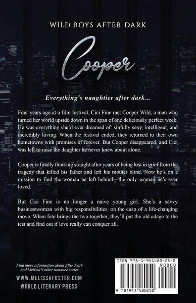 Discover the magic of New York Times bestseller Melissa Foster's writing, and see why millions of readers have fallen in love with the Love in Bloom series. Wild Billionaires After Dark are a series of stand-alone romances that may also be enjoyed as part of the larger Love in Bloom series. Indulge your inner vixen with these sexy billionaires! Meet the Wild Boys... Four fiercely loyal, sinfully sexy, uber alpha brothers, about to fall head over heels for their leading ladies.Meet the Bad Boys... Four fiercely loyal, sinfully sexy, uber alpha brothers, about to fall head over heels for their leading ladies. Everything's naughtier after dark...Four years ago at a film festival, Cici Fine met Cooper Wild, a man who turned her world upside down in the span of one deliciously perfect week. He was everything she'd ever dreamed of: sinfully sexy, intelligent, and incredibly loving. When the festival ended, they returned to their own hometowns with promises of forever. But Cooper disappeared, and Cici was left to raise the daughter he never knew about alone. Cooper is finally thinking straight after years of being lost in grief from the tragedy that killed his father and left his mother blind. Now he's on a mission to find the woman he left behind--the only woman he's ever loved. But Cici Fine is no longer a naive young girl. She's a savvy businesswoman with big responsibilities, on the cusp of a life-changing move. When fate brings the two together, they'll put the old adage to the test and find out if love really can conquer all. *** Read the entire Billionaires After Dark series: WILD BOYS AFTER DARK Logan Heath Jackson Cooper BAD BOYS AFTER DARK Mick Dylan Carson Brett The BILLIONAIRES AFTER DARK series are part of the LOVE IN BLOOM big family romance collection. Each book may be read as a stand-alone novel, or as part of the series.