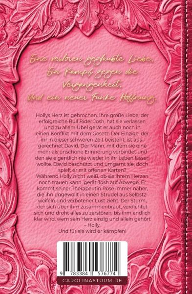 Eine verloren geglaubte Liebe. Ein Kampf gegen die Vergangenheit. Und ein neuer Funke Hoffnung.Hollys Herz ist gebrochen. Ihre große Liebe, der erfolgreiche Bull Rider Josh, hat sie verlassen und zu allem Übel gerät er auch noch in einen Konflikt mit dem Gesetz. Der Einzige, der ihr in dieser schweren Zeit beisteht, ist ausgerechnet David. Der Mann, mit dem sie eine mehr als unschöne Erinnerung verbindet und den sie eigentlich nie wieder in ihr Leben lassen wollte. David beschützt und umgarnt sie, doch spielt er mit offenen Karten? Während Holly nicht weiß, ob sie ihrem Herzen noch trauen kann, gerät Josh auf Abwege. Er kommt seiner Therapeutin Rose immer näher, die ihn ungewollt in einen Strudel aus Selbstzweifeln und verbotener Lust zieht. Der Sturm, der sich über ihm zusammenbraut, verdichtet sich und droht alles zu zerstören, bis ihm endlich klar wird, wem sein Herz einzig und allein gehört - Holly. Und für sie wird er kämpfen!Band 3 der Wild Creek Cowboys.
