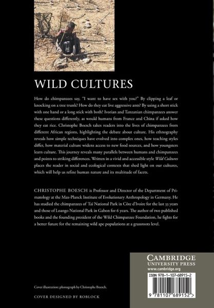 How do chimpanzees say, 'I want to have sex with you?' By clipping a leaf or knocking on a tree trunk? How do they eat live aggressive ants? By using a short stick with one hand or long stick with both? Ivorian and Tanzanian chimpanzees answer these questions differently, as would humans from France and China if asked how they eat rice. Christophe Boesch takes readers into the lives of chimpanzees from different African regions, highlighting the debate about culture. His ethnography reveals how simple techniques have evolved into complex ones, how teaching styles differ, how material culture widens access to new food sources and how youngsters learn culture. This journey reveals many parallels between humans and chimpanzees and points to striking differences. Written in a vivid and accessible style, Wild Cultures places the reader in social and ecological contexts that shed light on our twin cultures.