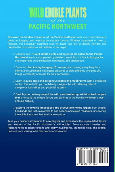 Discover the hidden treasures of the Pacific Northwest with "Wild Edible Plants of the Pacific Northwest," your comprehensive guide to foraging and feasting on nature's bounty. Whether seasoned or new to foraging, this beautifully illustrated book will teach you how to identify, harvest, and prepare the most delicious wild edibles in the region. ¿ Unearth over 75 wild edible plants and mushrooms native to the Pacific Northwest, each accompanied by detailed descriptions, vibrant photographs, and expert tips on identification, harvesting, and preparation. ¿ Learn to avoid toxic and poisonous plants and mushrooms with a dedicated section that will help you confidently navigate the wild, steering clear of dangerous look-alikes and potential hazards. ¿ Enrich your culinary repertoire with mouthwatering, wild-inspired recipes that showcase the unique flavors and textures of the Pacific Northwest's most enticing edibles. Key benefits of "Wild Edible Plants of the Pacific Northwest" include: ¿ Comprehensive profiles of wild edibles, complete with photographs, habitat information, and harvesting guidelines. ¿ Expert advice on identification, responsible foraging, and avoiding poisonous look-alikes. ¿ Delicious and nutritious recipes that celebrate the unique flavors of wild foods. ¿ Tips for incorporating wild edibles into your daily meals and creating unforgettable culinary experiences. ¿ An in-depth exploration of the region's diverse ecosystems and the edible treasures they offer. Take your culinary adventures to new heights and experience the unparalleled flavors and textures of the Pacific Northwest's wild edibles. From succulent berries and fragrant herbs to tender greens and earthy mushrooms, the forest, field, and coastal treasures are waiting to be discovered and savored. Don't miss out on this exciting journey into the heart of nature's pantry.