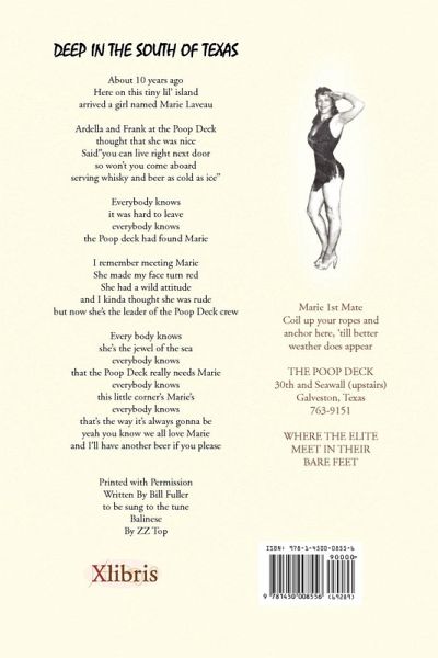 DEEP IN THE SOUTH OF TEXAS About twenty years ago Here on this tiny lil' island She called herself Marie Laveaux Ardella and Frank had the Poop Deck She came in to dry her hair With the bright sun and the gulf breeze Frank said "You're the one" Come on aboard and we'll have some fun! Everyone knows It was hard to leave And so the story goes Of the Poop Deck and this girl Marie I remember Marie The day I first came in She copped a bad attitude Cause she thought I was rude We really got under each other's skin Now everybody knows The Poop Deck and Marie And everybody knows It wouldn't be the same without Marie Yeah! Everybody knows It was hard to leave Everybody knows About the Poop Deck and Marie I'll have another beer if you please!