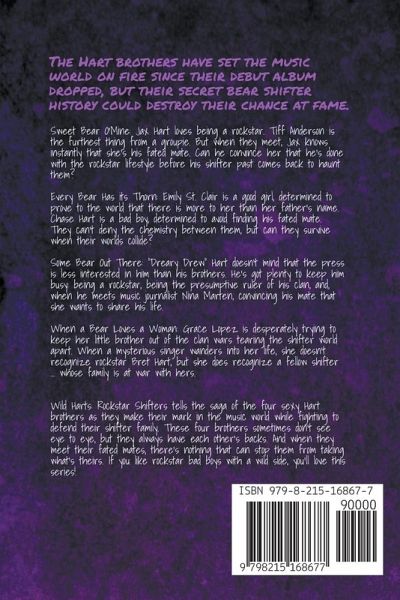 The Hart brothers have set the music world on fire since their debut album dropped. They've relished the rockstar lifestyle … and all the perks that come with it. But these four alpha brothers are more than just rockstars. The Hart brothers are bear shifters, and each one of them has a curvy mate fated just for them, if they can look beyond the limelight. Sweet Bear O'Mine: Jax Hart loves being a rockstar. Tiff Anderson is the furthest thing from a groupie. But when they meet, Jax knows instantly that she's his fated mate. Can he convince her that he's done with the rockstar lifestyle before his shifter past comes back to haunt them? Every Bear Has its Thorn: Emily St. Clair is a good girl, determined to prove to the world that there is more to her than her father's name. Chase Hart is a bad boy, determined to avoid finding his fated mate. They can't deny the chemistry between them, but can they survive when their worlds collide? Some Bear Out There: "Dreary Drew" Hart doesn't mind that the press is less interested in him than his brothers. He's got plenty to keep him busy: being a rockstar, being the presumptive ruler of his clan, and, when he meets music journalist Nina Marten, convincing his mate that she wants to share his life. When a Bear Loves a Woman: Grace Lopez is desperately trying to keep her little brother out of the clan wars tearing the shifter world apart. When a mysterious singer wanders into her life, she doesn't recognize rockstar Bret Hart, but she does recognize a fellow shifter … whose family is at war with hers. Wild Harts: Rockstar Shifters tells the saga of the four sexy Hart brothers as they make their mark in the music world while fighting to defend their shifter family. These four brothers sometimes don't see eye to eye, but they always have each other's backs. And when they meet their fated mates, there's nothing that can stop them from taking what's theirs. If you like rockstar bad boys with a wild side, you'll love this series!