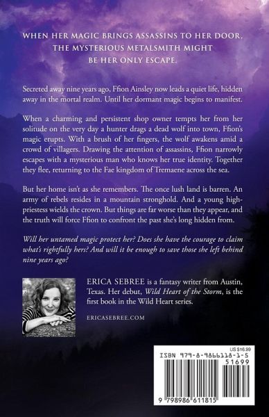When her magic brings assassins to her door, the mysterious metalsmith might be her only escape. Secreted away nine years ago, Ffion Ainsley now leads a quiet life, hidden away in the mortal realm. Until her dormant magic begins to manifest. When a charming and persistent shop owner tempts her from her solitude on the very day a hunter drags a dead wolf into town, Ffion's magic erupts. With a brush of her fingers, the wolf awakens amid a crowd of villagers. Drawing the attention of assassins, Ffion narrowly escapes with a mysterious man who knows her true identity. Together they flee, returning to the Fae kingdom of Tremaene across the sea. But her home isn't as she remembers. The once lush land is barren. An army of rebels resides in a mountain stronghold. And a young high-priestess wields the crown. But things are far worse than they appear, and the truth will force Ffion to confront the past she's long hidden from. Will her untamed magic protect her? Does she have the courage to claim what's rightfully hers? And will it be enough to save those she left behind nine years ago? ____ Wild Heart of the Storm is the first book in the Wild Heart fantasy series, though it can be read on its own. Perfect for fans of Samantha Shannon, Naomi Novik, Shannon A. Chakraborty, Victoria Aveyard, and Sarah J. Maas.