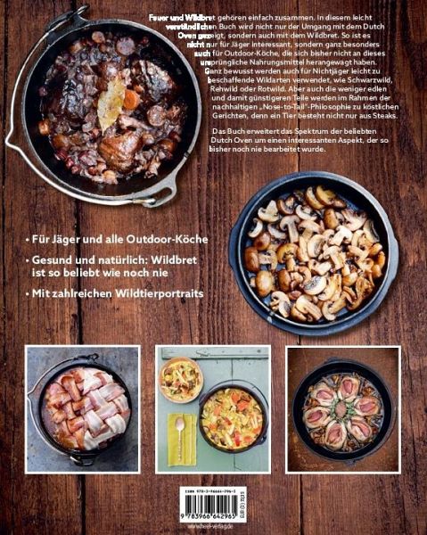 Feuer und Wildbret gehören einfach zusammen. In diesem leicht verständlichen Buch wird nicht nur der Umgang mit dem Dutch Oven gezeigt, sondern auch der Umgang mit dem Wildbret. So ist es nicht nur für Jäger interessant, sondern ganz besonders auch für Outdoor-Köche, die sich bisher nicht an dieses ursprüngliche Nahrungsmittel herangewagt haben. Ganz bewusst werden auch für Nichtjäger leicht zu beschaffenden Wildarten verwendet, wie Schwarzwild, Rehwild oder Rotwild. Aber auch die weniger edlen und damit günstigeren Teile werden im Rahmen der nachhaltigen "Nose-to-Tail"-Philosophie zu köstlichen Gerichten, denn ein Tier besteht nicht nur aus Steaks. Das Buch erweitert das Spektrum der beliebten Dutch Oven um einen interessanten Aspekt, der so bisher noch nie bearbeitet wurde.