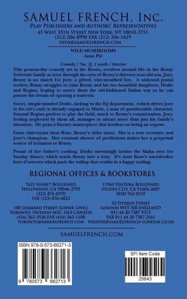 Comedy / 2m,3f, / Interior This present-day comedy set in the Bronx, revolves around life in the Benny Scrivente family as seen through the eyes of Benny's thirteen year-old son, Joey. Benny is no match for Joey. a gifted, wise-mouthed boy. A widowed postal worker, Benny struggles to raise Benny and his two beautiful daughters, Dodie and Regina, hoping to marry them the old-fashioned Italian way so he can pursue his dream of opening a trattoria. Sweet, simple-minded Dodie, lacking in the IQ department, (which drives Joey to his wit's end) is already engaged to Mario, a man of questionable character. Sensual Regina prefers to play the field, much to Benny's consternation. Joey, feeling neglected by them all, manages to attract more than just his family's attention. He pens a literary masterpiece that borders on being an expose. Enter clairvoyant Aunt Rose, Benny's older sister. She is a true eccentric and Joey's champion. Her constant shower of predictions makes her a perpetual source of irritation to Benny. Proud of her father's cooking, Dodie unwittingly invites the Mafia over for Sunday dinner, which sends Benny into a tizzy. It's Aunt Rose's unorthodox hors d'oeuvres which pack the wallop that results in a happy ending."