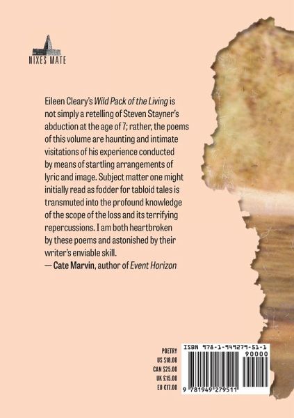 Eileen Cleary's Wild Pack of the Living is not simply a retelling of Steven Stayner's abduction at the age of 7; rather, the poems of this volume are haunting and intimate visitations of his experience conducted by means of startling arrangements of lyric and image. Subject matter one might initially read as fodder for tabloid tales is transmuted into the profound knowledge of the scope of the loss and its terrifying repercussions. I am both heartbroken by these poems and astonished by their writer's enviable skill. - Cate Marvin, author of Event Horizon