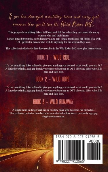 If you love damaged ex-military heroes and curvy girl romance then you'll love the Wild Riders MC! This group of ex-military bikers fall hard and fall fast when they encounter the curvy women who heal their hearts. Expect forced proximity, forbidden love, age gap, single moms and off-limits love with OTT protector heroes who will do anything for the women they love. This collection includes the first three novellas in the Wild Riders series plus bonus scenes. Book 1 - Wild Ride If a hot ex-military biker offered to give you anything you desired, what would you ask for? A forced proximity, age gap instalove romance featuring an OTT obsessed biker who falls hard and falls first. Book 2 - Wild Hope - Bonus scene included Why is forbidden love the sweetest? A big brother's best friend, forbidden love romance. Book 3 - Wild Runaway - Bonus scene included A single mom in danger and the ex-military biker who becomes her protector... This reclusive protector hero becomes an insta-dad in this forced proximity, age gap, single mom romance.