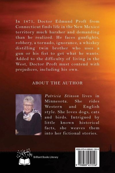 In 1871, Doctor Edmund Proft from Connecticut finds life in the New Mexico territory much harsher and demanding than he realized. He faces gunfights, robbery, a tornado, ignorance, a whiskey distilling twin brother who uses a gun or his fist to get what he wants. Added to the difficulty of living in the West, Doctor Proft must contend with prejudices, including his own.