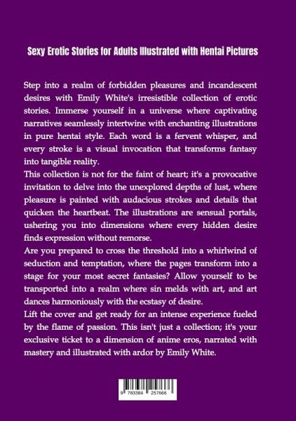 Indulge in an Unforgettable Journey of Passion and Temptation with Emily White's Erotic Masterpiece!Step into a captivating world where seduction knows no bounds in Emily White's latest collection of scintillating erotic stories, enriched with enchanting hentai illustrations. Immerse yourself in a universe where each word is a whispered promise, and every brushstroke is a visual enchantment that brings fantasies to life in pure hentai style.This collection is a daring invitation to explore the uncharted depths of desire, where pleasure unfolds with audacious strokes and details that will quicken your heartbeat. The carefully crafted hentai illustrations serve as sensuous portals, transporting you into dimensions where every hidden fantasy finds unabashed expression.What to Expect:- A Fusion of Literary Mastery and Sensual Artistry- Explicit and Alluring Hentai Illustrations- Stories That Explore the Boundaries of Lust and Fantasy- A Whirlwind of Seduction and TemptationThis isn'tjust a collection; it's your exclusive ticket to a dimension of hentai eros, meticulously narrated and ardently illustrated by Emily White. Lift the cover and prepare for an intense experience fueled by the flame of passion.Caution: This Collection is Not for the Faint of Heart. Are You Ready to Cross the Threshold?