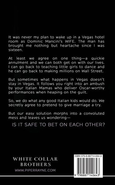 It was never my plan to wake up in a Vegas hotel room as Dominic Mancini's WIFE. The man has brought me nothing but heartache since I was sixteen. At least we agree on one thing-a quickie annulment and we can both get on with our lives. I can go back to teaching little girls to dance and he can go back to making millions on Wall Street. But sometimes what happens in Vegas doesn't stay in Vegas. It follows you right into an ambush by your Italian Mamas who deliver Oscar-worthy performances when heaping on the guilt. So, we do what any good Italian kids would do. We secretly agree to pretend to give marriage a try. But our easy solution morphs into a convoluted mess and leaves us wondering-is it safe to bet on each other?