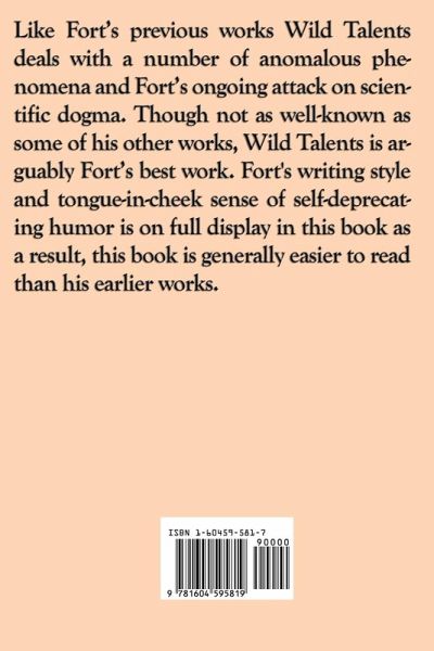 Like Fort's previous works Wild Talents deals with a number of anomalous phenomena and Fort's ongoing attack on scientific dogma. Though not as well-known as some of his other works, Wild Talents is arguably Fort's best work. Fort's writing style and tongue-in-cheek sense of self-deprecating humor is on full display in this book as a result, this book is generally easier to read than his earlier works.