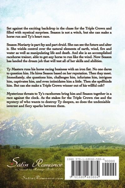 Set against the exciting backdrop in the chase for the Triple Crown and filled with mystical surprises. Season can make a horse run and Ty's heart race. Season Moriarty is fey and druid. Now she has landed the dream job that will test all of her skills and abilities. Ty Masters runs his business with an iron fist. Season challenges him, infuriates him, captivates him, and even intimidates him. But can she make a Triple Crown winner out of his willful colt? Mysterious threats bring them together in another race. The stakes for the Triple Crown rise and the unknown identity of who wants to destroy Ty continues, so do their fiery sparks.