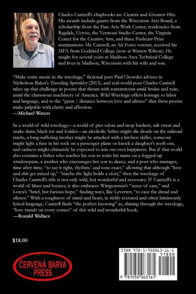 "Make some music in the wreckage," fictional poet Paul Chowder advises in Nicholson Baker's Traveling Sprinkler (2013), and real-world poet Charles Cantrell takes up that challenge in poems that thrum with romanticism amid bruise and ruin, amid the clamorous machinery of America. Wild Wreckage offers homage to labor and language, and to the "great / distance between love and silence" that these poems make palpable with clarity and affection. -Michael Waters