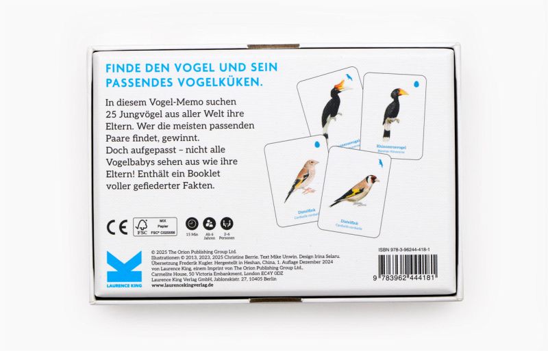 -Ein Highlight in unserer Memo-Reihe: 25 Vogelarten suchen ihre süßen Jungen-Enthält ein Booklet mit Wissenswertem zu den Vögeln-Fantastische IllustrationenIn diesem Memo müssen 25 erwachsenen Vogelarten ihre Babys zugeordnet werden. Wer die meisten passenden Pärchen findet, gewinnt. Aber Vorsicht: Manche Babys sehen dem erwachsenen Vogel überhaupt nicht ähnlich! Mit wunderschönen Vögeln aus der ganzen Welt - vom Weißkopfseeadler bis zum Emu und von der Schneeeule bis zum Scharlachibis. Niedlichkeitsalarm!
