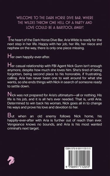 New York Times bestselling author Jennifer Ryan's page-turning Dark Horse Dive Bar series continues with Aria and Nick's story. Welcome to the Dark Horse Dive Bar, where the Wildes throw one hell of a party and love could be a barstool away! The heart of the Dark Horse Dive Bar, Aria Wilde is ready for the next step in her life. Happy with her job, her life, her niece and nephew on the way, there is only one piece missing. Her own happily-ever-after. Her casual relationship with FBI Agent Nick Gunn isn't enough anymore, despite how much she loves him. She's tired of being forgotten, being second place to his honorable, if frustrating, calling. Aria has never been one to wait around for what she wants, so she ends things with Nick in search of someone ready to settle down. Nick was not prepared for Aria's ultimatum-all or nothing. His life is his job, and it is all he's ever needed. That is, until Aria. Determined to win back his woman, Nick goes all in to change his ways and prove his love and devotion to her. But when an old enemy follows Nick home, his happily-ever-after with Aria is further out of reach than ever. Vengeance knows no bounds, and Aria is his most wanted criminal's next target.