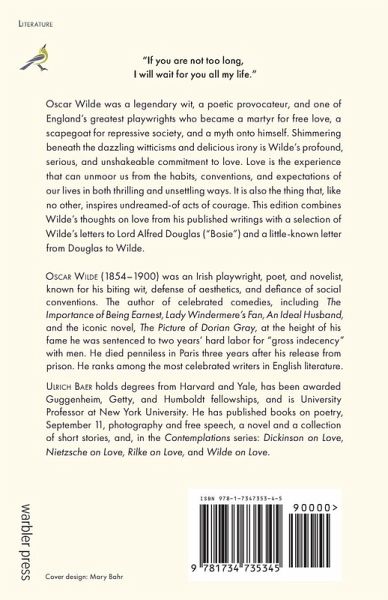 Oscar Wilde was a legendary wit, a poetic provocateur, and one of England's greatest playwrights who became a martyr for free love, a scapegoat for repressive society, and a myth unto himself. Shimmering beneath the dazzling witticisms and delicious irony is Wilde's profound, serious, and unshakeable commitment to love. Love is the experience that can unmoor us from the habits, conventions, and expectations of our lives in both thrilling and unsettling ways. It is also the thing that, like no other, inspires undreamed-of acts of courage. This edition combines Wilde's thoughts on love from his published writings with a selection of Wilde's letters to Lord Alfred Douglas ("Bosie") and a little-known letter from Douglas to Wilde.