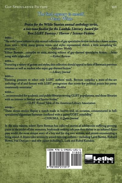 In the 2013 volume of Wilde Stories--a critically acclaimed series reprinting the best of the prior year's gay fantasy, horror and science-fiction tales--editor Steve Berman has collected stories of adolescents suffering growing pains in the midst of lake monsters, boyfriends seeking a safe pest-free shelter in an infested dystopian world, the most unique story of a boy and his dog ever written, a forbidden encounter between prison guard and inmate, and pirates encountering a fabled living island. A dozen tales written by award-winning authors including Laird Barron, Richard Bowes, Hal Duncan--and new talent including L. Lark and Rahul Kanakia.