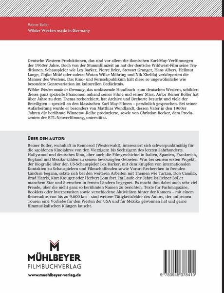 Deutsche Western-Produktionen, das sind vor allem die ikonischen Karl-May-Verfilmungen der 1960er Jahre. Doch von der Stummfilmzeit an hat der deutsche Wildwest-Film seine Traditionen. Schauspieler wie Lex Barker, Pierre Brice, Stewart Granger, Hans Albers, Hellmut Lange, Gojko Mitic oder zuletzt Wotan Wilke Möhring und Nik Xhelilaj verkörperten die Männer des Westens. Das Kino- und Fernsehpublikum hält diese so ungewöhnliche wie besondere Genrevariation im kulturellen Gedächtnis. "Wilder Westen made in Germany", das umfassende Handbuch zum deutschen Western, schildert dieses ganz spezielle Phänomen anhand seiner Filme und seiner Stars. Autor Reiner Boller hat über Jahre zu dem Thema recherchiert, hat Archive und Drehorte besucht und viele der Beteiligten - speziell an den klassischen Karl May-Filmen - persönlich gesprochen. Bei seiner Aufarbeitung wurde er besonders von Matthias Wendlandt, dessen Vater in den 1960er Jahren die berühmte Winnetou-Reihe produzierte, sowie von Christian Becker, dem Produzenten der RTL-Neuverfilmung, unterstützt.