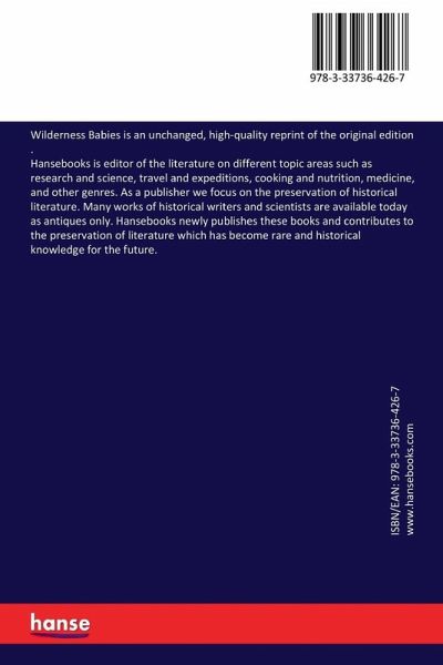 Wilderness Babies is an unchanged, high-quality reprint of the original edition .Hansebooks is editor of the literature on different topic areas such as research and science, travel and expeditions, cooking and nutrition, medicine, and other genres. As a publisher we focus on the preservation of historical literature. Many works of historical writers and scientists are available today as antiques only. Hansebooks newly publishes these books and contributes to the preservation of literature which has become rare and historical knowledge for the future.