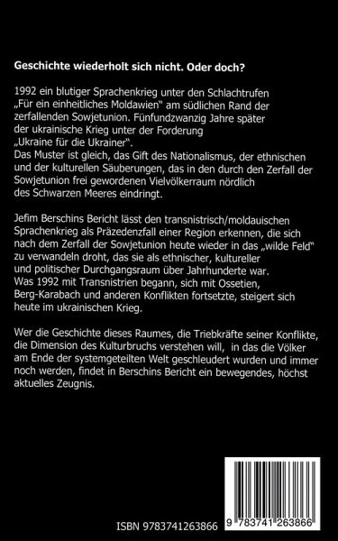 Geschichte wiederholt sich nicht. Oder doch?1992 ein blutiger Sprachenkrieg unter den Schlachtrufen "Für ein einheitliches Moldawien" am südlichen Rand der zerfallenen Sowjetunion. Fünfundzwanzig Jahre später der ukrainische Krieg unter der Forderung "Ukraine für die Ukrainer". Das Muster ist gleich, das Gift des Nationalismus, der ethnischen und der kulturellen Säuberungen, das in den durch den Zerfall der Sowjetunion frei gewordenen Vielvölkerraum nördlich des Schwarzen Meeres eindringt. Jefim Berschins Bericht lässt den transnistrisch-moldauischen Sprachenkrieg als Präzedenzfall einer Region erkennen, die sich nach dem Verfall der Sowjetunion heute wieder in das "Wilde Feld" zu verwandeln droht, das sie als ethnischer, kultureller und politischer Durchgangsraum über Jahrhunderte war. Was 1992 mit Transnistrien begann, sich mit Ossetien, Berg-Karabach und anderen Konflikten fortsetzte, steigert sich heute im ukrainischen Krieg. Wer die Geschichte dieses Raumes, die Triebkräfte seiner Konflikte, die Dimension des Kulturbruchs verstehen will, in das Völker am Ende der systemgeteilten Welt geschleudert wurden und immer noch werden, findet in Berschins Bericht ein bewegendes, höchst aktuelles Zeugnis.