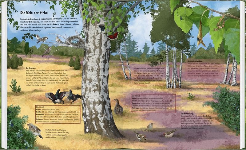 Ilka Sokolowski nimmt die Leserinnen und Leser mit auf eine spannende Entdeckungsreise durch verschiedene Wälder und Landschaften. Dabei erfahren wir, was in alten Eichen, Buchen oder Obstbäumen alles los ist. Jeder Baum hat seine eigenen Bewohner – von winzigen Käfern bis zu großen Vögeln oder sogar Fledermäusen.
