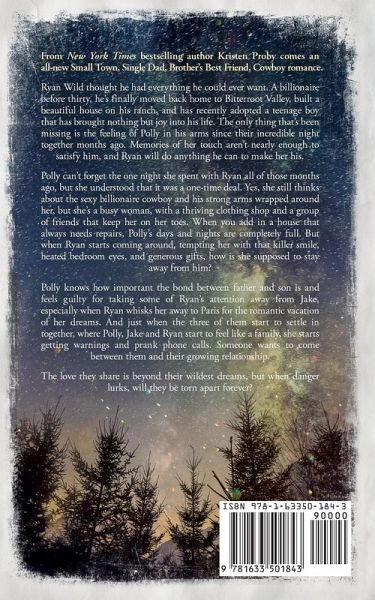 From New York Times bestselling author Kristen Proby comes an all-new Small Town, Single Dad, Brother's Best Friend, Cowboy romance. Ryan Wild thought he had everything he could ever want. A billionaire before thirty, he's finally moved back home to Bitterroot Valley, built a beautiful house on his ranch, and has recently adopted a teenage boy that has brought nothing but joy into his life. The only thing that's been missing is the feeling of Polly in his arms since their incredible night together months ago. Memories of her touch aren't nearly enough to satisfy him, and Ryan will do anything he can to make her his. Polly can't forget the one night she spent with Ryan all of those months ago, but she understood that it was a one-time deal. Yes, she still thinks about the sexy billionaire cowboy and his strong arms wrapped around her, but she's a busy woman, with a thriving clothing shop and a group of friends that keep her on her toes. When you add in a house that always needs repairs, Polly's days and nights are completely full. But when Ryan starts coming around, tempting her with that killer smile, heated bedroom eyes, and generous gifts, how is she supposed to stay away from him? Polly knows how important the bond between father and son is and feels guilty for taking some of Ryan's attention away from Jake, especially when Ryan whisks her away to Paris for the romantic vacation of her dreams. And just when the three of them start to settle in together, where Polly, Jake and Ryan start to feel like a family, she starts getting warnings and prank phone calls. Someone wants to come between them and their growing relationship. The love they share is beyond their wildest dreams, but when danger lurks, will they be torn apart forever?