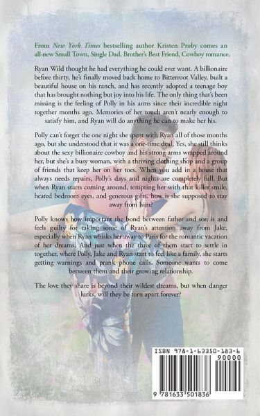 From New York Times bestselling author Kristen Proby comes an all-new Small Town, Single Dad, Brother's Best Friend, Cowboy romance. Ryan Wild thought he had everything he could ever want. A billionaire before thirty, he's finally moved back home to Bitterroot Valley, built a beautiful house on his ranch, and has recently adopted a teenage boy that has brought nothing but joy into his life. The only thing that's been missing is the feeling of Polly in his arms since their incredible night together months ago. Memories of her touch aren't nearly enough to satisfy him, and Ryan will do anything he can to make her his. Polly can't forget the one night she spent with Ryan all of those months ago, but she understood that it was a one-time deal. Yes, she still thinks about the sexy billionaire cowboy and his strong arms wrapped around her, but she's a busy woman, with a thriving clothing shop and a group of friends that keep her on her toes. When you add in a house that always needs repairs, Polly's days and nights are completely full. But when Ryan starts coming around, tempting her with that killer smile, heated bedroom eyes, and generous gifts, how is she supposed to stay away from him? Polly knows how important the bond between father and son is and feels guilty for taking some of Ryan's attention away from Jake, especially when Ryan whisks her away to Paris for the romantic vacation of her dreams. And just when the three of them start to settle in together, where Polly, Jake and Ryan start to feel like a family, she starts getting warnings and prank phone calls. Someone wants to come between them and their growing relationship. The love they share is beyond their wildest dreams, but when danger lurks, will they be torn apart forever?