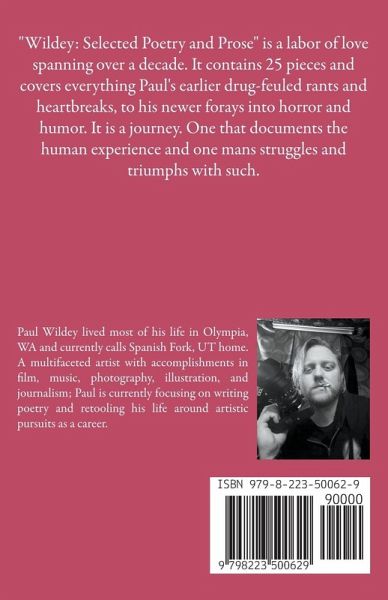 "Wildey: Selected Poetry and Prose" is a labor of love spanning over a decade. It contains 25 pieces and covers everything Paul's earlier drug-feuled rants and heartbreaks, to his newer forays into horror and humor. It is a journey. One that documents the human experience and one mans struggles and triumphs with such.