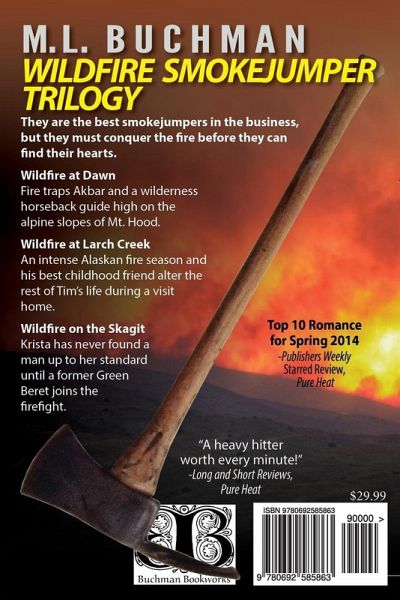 -a Firehawks Smokejumper romance novel collection- They are the best smokejumpers in the business, but they must conquer the fire before they can find their hearts. Wildfire at Dawn: Fire traps Akbar and a wilderness horseback guide high on the alpine slopes of Mt. Hood. Wildfire at Larch Creek: An intense Alaskan fire season and his best childhood friend alter the rest of Tim's life during a visit home. Wildfire on the Skagit: Krista has never found a man up to her standard until a former Green Beret joins the firefight.