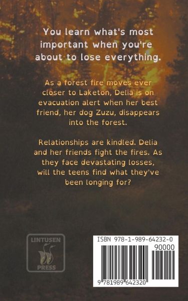 You learn what's most important when you're about to lose everything. As a forest fire moves ever closer to Laketon, Delia is on evacuation alert when her best friend, her dog Zuzu, disappears into the forest. Relationships are kindled. Delia and her friends fight the fires. As they face devastating losses, will the teens find what they've been longing for? Life in Laketon novels are High Interest Low vocabulary (HiLo) novellas for teens. Flesch reading ease: 88.8 Flesch-Kincaid grade level 2.9 Paperbacks are printed in Open Dyslexic font