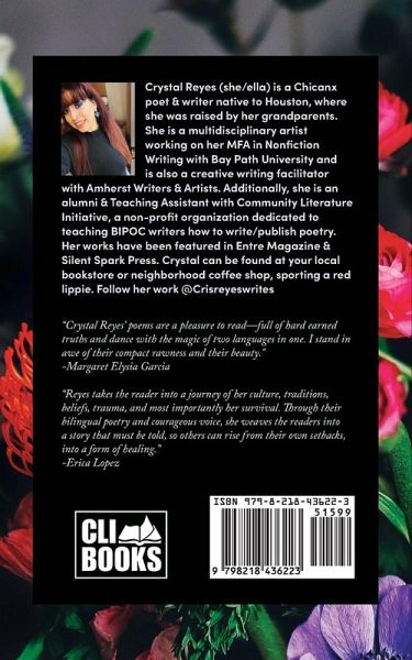 Wildflower Blooming is the debut collection of poetry by multidisciplinary artist Crystal Reyes. Her book tackles themes of femininity, motherhood, sexploration, Spanish customs, and healing through self-love. She formerly found herself in a crisis of domestic violence, lingering to hold it all together for the sake of her first-born, she made the courageous decision to leave a toxic marriage, despite cultural norms. Instead of surrendering to depression or chismes de la familia, she made it a personal journey to rebuild her life around healing generational traumas and finding her true self in all her splendor. Reyes examines what takes root after detrimental life-experiences, and cultivating wholesome moments from what was once broken. Her voice is unique as you will see many of her poems interweave & embed Spanish, English, & Spanglish together in various forms.