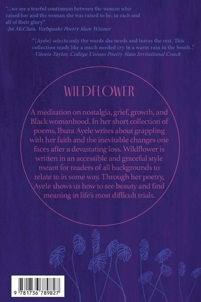 Wildflower is a meditation on nostalgia, grief, growth, and Black womanhood. In her short collection of poems, Ibura Ayele writes about grappling with her faith and the inevitable changes one faces after a devastating loss. Wildflower is written in an accessible and graceful style meant for readers of all backgrounds to relate to in some way. Through her poetry, Ayele shows us how to see beauty and find meaning in life's most difficult trials.