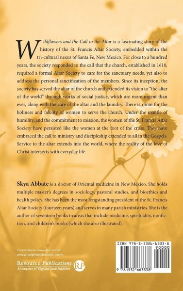 Wildflowers and the Call to the Altar is a fascinating story of the history of the St. Francis Altar Society, embedded within the tri-cultural nexus of Santa Fe, New Mexico. For close to a hundred years, the society responded to the call that the church, established in 1610, required a formal Altar Society to care for the sanctuary needs, yet also to address the personal sanctification of the members. Since its inception, the society has served the altar of the church and extended its vision to "the altar of the world" through works of social justice, which are more urgent than ever, along with the care of the altar and the laundry. There is room for the holiness and fidelity of women to serve the church. Under the mantle of humility, and the commitment to mission, the women of the St. Francis Altar Society have persisted like the women at the foot of the cross. They have embraced the call to ministry and discipleship extended to all in the Gospels. Service to the altar extends into the world, where the reality of the love of Christ intersects with everyday life.