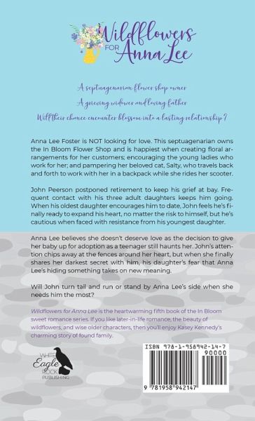 A septuagenarian flower shop owner. A grieving widower and loving father. Will their chance encounter blossom into a lasting relationship? Anna Lee Foster is NOT looking for love. This septuagenarian owns the In Bloom Flower Shop and is happiest when creating floral arrangements for her customers; encouraging the young ladies who work for her; and pampering her beloved cat, Salty, who travels back and forth to work with her in a backpack while she rides her scooter. John Peerson postponed retirement to keep his grief at bay. Frequent contact with his three adult daughters keeps him going. When his oldest daughter encourages him to date, John feels he's finally ready to expand his heart, no matter the risk to himself, but he's cautious when faced with resistance from his youngest daughter. Anna Lee believes she doesn't deserve love as the decision to give her baby up for adoption as a teenager still haunts her. John's attention chips away at the fences around her heart, but when she finally shares her darkest secret with him, his daughter's fear that Anna Lee's hiding something takes on new meaning. Will John turn tail and run or stand by Anna Lee's side when she needs him the most? Wildflowers for Anna Lee is the heartwarming fifth book of the In Bloom sweet romance series. If you like later-in-life romance, the beauty of wildflowers, and wise older characters, then you'll enjoy Kasey Kennedy's charming story of found family. Each story in this series is a standalone, but you have the benefit of seeing recurring characters throughout the books.