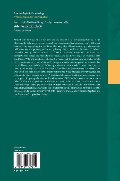 Many books have now been published in the broad field of environmental toxicology. However, to date, none of have presented the often fascinating stories of the wildlife science, and the steps along the way from discovery of problems caused by environmental pollutants to the regulatory and non-regulatory efforts to address the problems. This book provides case by case examinations of how toxic chemical effects on wildlife have brought about policy and regulatory decisions, and positive changes in environmental conditions. Wild animal stories, whether they are about the disappearance of charismatic top predators, or of grossly deformed embryos or frogs, provide powerful symbols that can and have captured the public's imagination and have resulted in increased awareness by decision makers. It is the intent of this book to present factual and balanced overviews and summaries of the science and the subsequent regulatory processes that followed to effect change (or not). We covera variety of chemicals and topics beginning with an update of the classic California coastal DDT story of eggshell thinning and avian reproduction to more recent cases, such as the veterinarian pharmaceutical that has brought three species of Asian vultures to the brink of extinction. Researchers, regulators, educators, NGOs and the general public will find valuable insights into the processes and mechanisms involved both in environmental scientific investigation and in efforts to effect positive change.