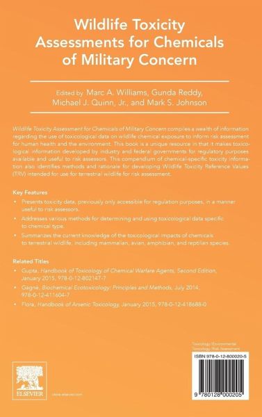Wildlife Toxicity Assessments for Chemicals of Military Concern is a much-needed resource designed to meet the needs of those seeking toxicological information for ecological risk assessment purposes. Each chapter targets a specific chemical and considers the current knowledge of the toxicological impacts of chemicals to terrestrial wildlife including mammalian, avian, amphibian and reptilian species.
